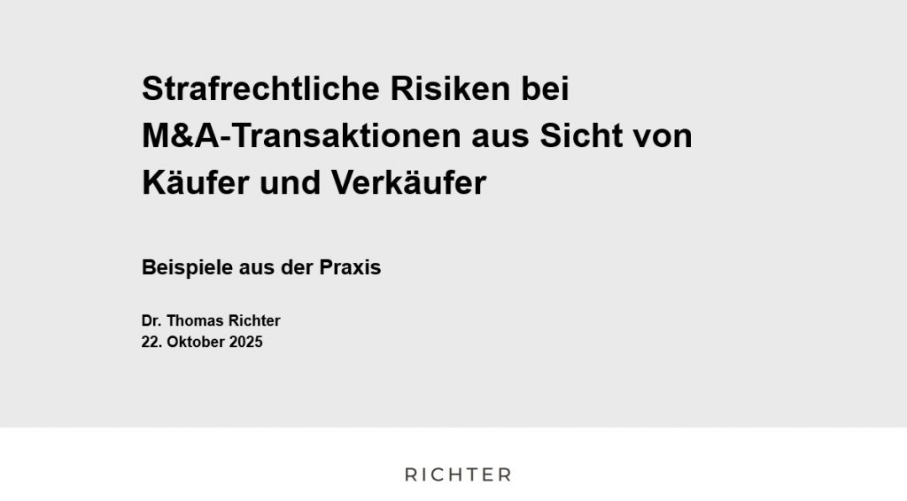 Dr. Thomas Richter/Benedict Detemple, in: Kubiciel (Hrsg.), Unternehmenssanktionen und Korruptionsstrafrecht zwischen Diversifizierung und Systemanspruch, 2025, S. 85 ff.