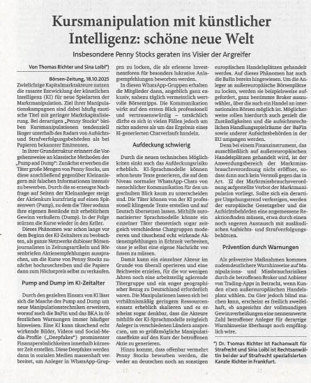 Dr. Thomas Richter/Sina Loibl, in: Börsen-Zeitung vom 18.10.2025, S. 8